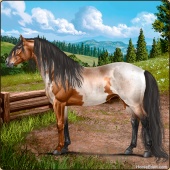 Name: Witch WayAge: 19 Gelding Color: Buckskin Roan Sabino Breed: Irish Sport Horse Foal Rating: P/P/P |  |