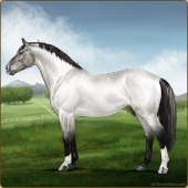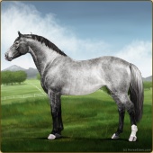 Name: ValeE X DHDea 186Age: 13 Stallion Color: Silver Smokey Black Sabino Rabicano Breed: Irish Sport Horse Foal Rating: E/E/E |  |