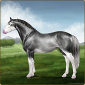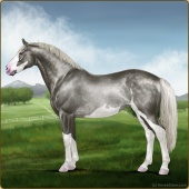 Name: (EWW) Balemont 1/125Age: 18 Stallion Color: Silver Roan Sabino Rabicano Breed: Irish Sport Horse Foal Rating: E/W/W |  |