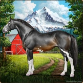Name: barton 2Age: 19 Mare Color: Smokey Black Splash White Sabino Rabicano Breed: Irish Sport Horse Foal Rating: E/E/E Bravery Rating: Sub-Par |  |