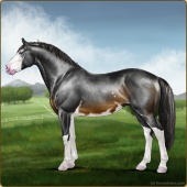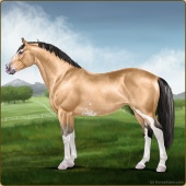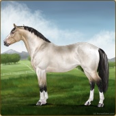 Name: Heir to the WestAge: 12 Stallion Color: Buckskin Roan Sabino Breed: Irish Sport Horse Foal Rating: E/E/P For Breeding! |  |