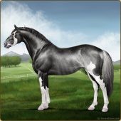 Name: PEW Silver Dollar 187Age: 12 Stallion Color: Black Splash White Rabicano Breed: Irish Sport Horse Foal Rating: P/E/W |  |