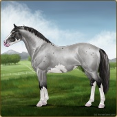 Name: - ARF Blue ValeAge: 0 Mare Color: Smokey Blue Roan Rabicano Appaloosa Breed: Irish Sport Horse Foal Rating: P/P/P |  |