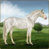 Name: HH PearlescentAge: 17 Mare Color: Blue Roan Splash White Rabicano Breed: Irish Sport Horse Foal Rating: E/E/E Bravery Rating: Sub-Par |  |