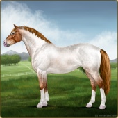 Name: *Ello Dawn EWWAge: 13 Stallion Color: Red Roan Dun Sabino Rabicano Breed: Irish Sport Horse Foal Rating: E/W/W |  |