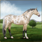 Name: 37829823Age: 18 Gelding Color: Palomino Roan Varnish Leopard Appaloosa Breed: Sport Horse Foal Rating: S/S/S |  |