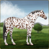 Name: 37829827Age: 18 Mare Color: Chestnut Leopard Appaloosa Breed: Sport Horse Foal Rating: S/S/S |  |