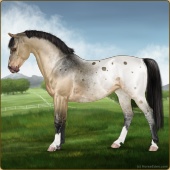 Name: foal 76534825Age: 11 Mare Color: Buckskin Roan Blanket Appaloosa Breed: Sport Pony |  |
