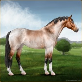 Name: foal 49784098Age: 11 Stallion Color: Red Roan Dun Breed: Sport Horse |  |