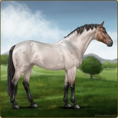 Name: foal 5995128Age: 7 Stallion Color: Grullo Varnish Leopard Appaloosa Breed: Sport Horse |  |