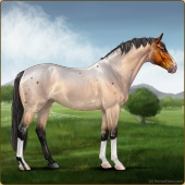 Name: foal 41020710Age: 7 Stallion Color: Light Bay Roan Dun Appaloosa Breed: Sport Horse |  |