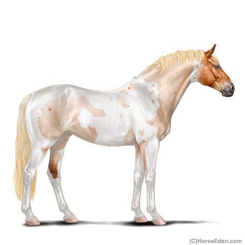 Name: 37891816Age: 20 Gelding Color: Dunalino Roan Tobiano Fewspot Appaloosa Breed: Sport Horse Foal Rating: S/S/S |  |