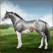 Name: Jetse X Bentl 182Age: 17 Mare Color: Silver Black Tobiano Sabino Rabicano Appaloosa Breed: Irish Sport Horse Foal Rating: E/P/P |  |