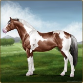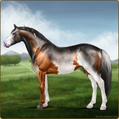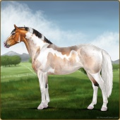 Name: Jetse X DMFre 180Age: 19 Stallion Color: Light Bay Tobiano Sabino Rabicano Varnish Appaloosa Breed: Irish Sport Horse Foal Rating: P/P/S |  |
