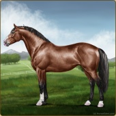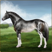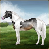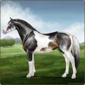 Name: Jetse X OJOJX 179Age: 20 Stallion Color: Silver Blood Bay Tobiano Sabino Breed: Irish Sport Horse Foal Rating: S/P/S |  |