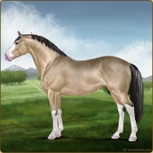 Name: Inis Or Winter SunAge: 8 Gelding Color: Buckskin Roan Tobiano Splash White Sabino Rabicano Snowflake Appaloosa Breed: Irish Sport Horse Foal Rating: P/P/P |  |