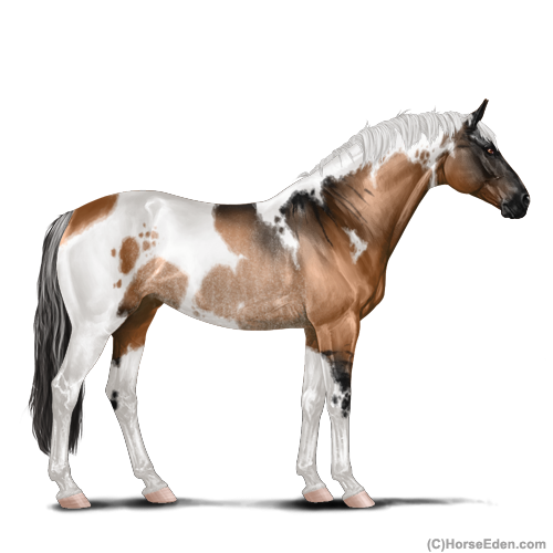 Color: Light Bay Dun Tobiano Rabicano