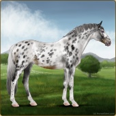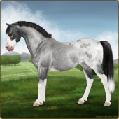 Name: Atlas X APAVI 193Age: 6 Mare Color: Grey Splash White Frost Appaloosa Breed: Sport Pony Foal Rating: S/P/P |  |