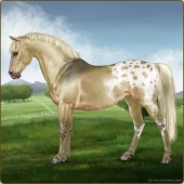 Name: ℘ Golden JoyAge: 4 Mare Color: Dunalino Splash White Sabino Varnish Snowflake Appaloosa Breed: Sport Pony Foal Rating: S/E/P |  |
