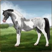 Name: Atlas X MrDeC 194Age: 5 Mare Color: Smokey Black Splash White Breed: Sport Pony Foal Rating: S/P/E For Sale! |  |