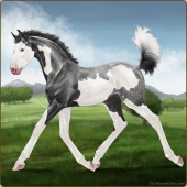 Name: Atlas X EWWJa 197Age: 2 Mare Color: Black Splash White Sabino Breed: Sport Pony Foal Rating: P/E/P |  |