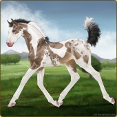 Name: Atlas X Dolla 196Age: 3 Mare Color: Chestnut Sabino Snowflake Appaloosa Breed: Sport Horse Foal Rating: P/E/P |  |