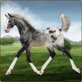 Name: ꋊꇙ ArtfulAge: 13 Gelding Color: Silver Black Varnish Appaloosa Breed: Irish Sport Horse Foal Rating: E/E/E Bravery Rating: Sub-Par |  |