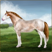 Name: Dragonfly DreamAge: 3 Mare Color: Red Roan Blanket Appaloosa Breed: Irish Sport Horse Foal Rating: E/E/E |  |