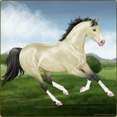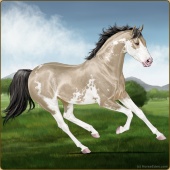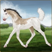 Name: AVS Pearl QuestAge: 13 Stallion Color: Buckskin Pearl Tobiano Sabino Breed: Thoroughbred Foal Rating: P/P/P Bravery Rating: Sub-Par |  |