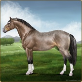 Name: Drovers Dun It WEPAge: 12 Stallion Color: Chocolate Dunalino Breed: Sport Horse Foal Rating: W/E/P Bravery Rating: Premium For Breeding! |  |