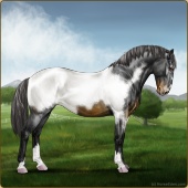 Name: Wilde PEEAge: 5 Stallion Color: Smokey Black Tobiano Appaloosa Breed: Sport Horse Foal Rating: P/E/E |  |