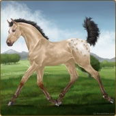 Name: FRS Snowy MountainAge: 2 Mare Color: Buckskin Snowcap Appaloosa Breed: Knabstrupper Foal Rating: P/E/E |  |