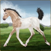 Name: WildM X Tende 200Age: 1 Filly Color: Perlino Dun Sabino Breed: Irish Sport Horse Foal Rating: E/W/W |  |