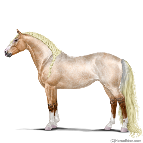Color: Flaxen Red Roan Dun Rabicano