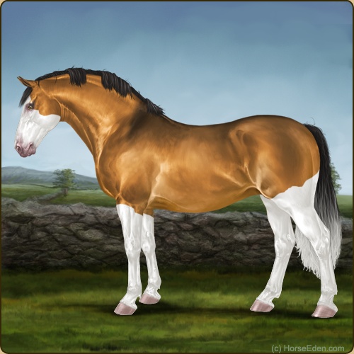 Color: Golden Bay Dun Splash White Sabino
