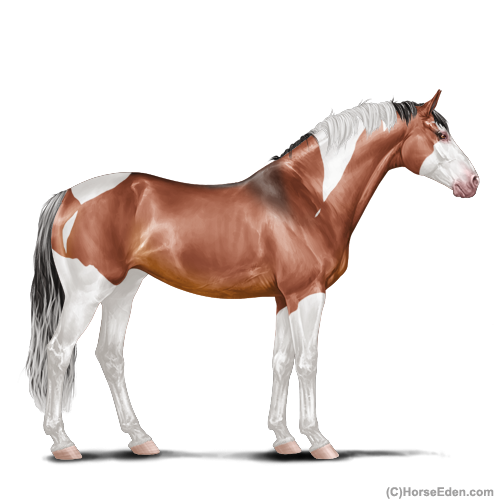 Color: Blood Bay Dun Tobiano Splash White