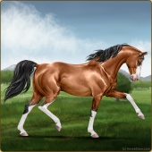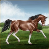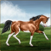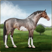 Name: [AHS] MerneptahAge: 0 Stallion Color: Mahogany Bay Sabino Breed: Anglo Arabian Foal Rating: E/W/E |  |