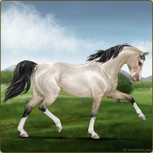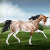 Name: MM Vanilla KingAge: 0 Gelding Color: Buttermilk Buckskin Roan Sabino Breed: Anglo Arabian Foal Rating: E/E/E Bravery Rating: Average |  |
