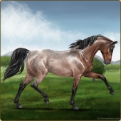 Name: Haettulegt Dark EEE (+I&Age: 0 Stallion Color: Light Bay Roan Breed: Anglo Arabian Foal Rating: E/E/E Bravery Rating: Average |  |