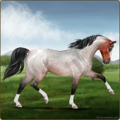 Name: Haeli InfinumAge: 0 Stallion Color: Light Bay Roan Sabino Breed: Anglo Arabian Foal Rating: E/E/E |  |