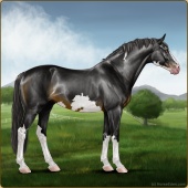 Name: Heavenly JoyAge: 0 Stallion Color: Black Sabino Breed: Anglo Arabian Foal Rating: E/E/E Bravery Rating: Sub-Par |  |