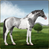 Name: ♣ Gold DiggerAge: 0 Mare Color: Blue Roan Tobiano Sabino Breed: Sport Horse Foal Rating: E/W/E |  |