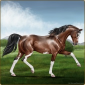 Name: Spoiled Rich KidAge: 0 Gelding Color: Light Bay Sabino Breed: Anglo Arabian Foal Rating: P/E/E Bravery Rating: Average |  |