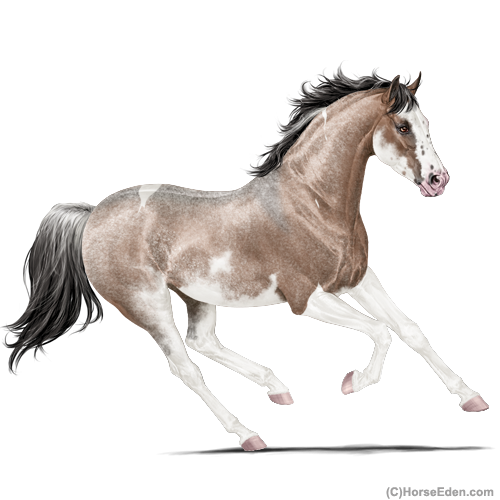Color: Mahogany Bay Roan Dun Tobiano Sabino Rabicano