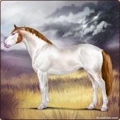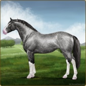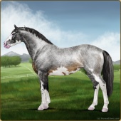 Name: Silver Sun BMEAge: 0 Stallion Color: Silver Roan Splash White Sabino Breed: Irish Sport Horse Foal Rating: E/E/E |  |