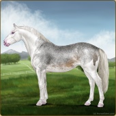 Name: DS Lady ErikAge: 0 Mare Color: Silver Smokey Roan Sabino Breed: Irish Sport Horse Foal Rating: P/E/E Bravery Rating: Sub-Par |  |