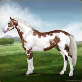 Name: {P} I'm So ShyAge: 0 Mare Color: Liver Chestnut Splash White Sabino Frame Breed: Irish Sport Horse Foal Rating: E/E/E |  |