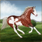 Name: Sb O Spl Thund X (PPP)Age: 0 Mare Color: Silver Blood Bay Splash White Sabino Frame Breed: Thoroughbred Foal Rating: P/P/P |  |