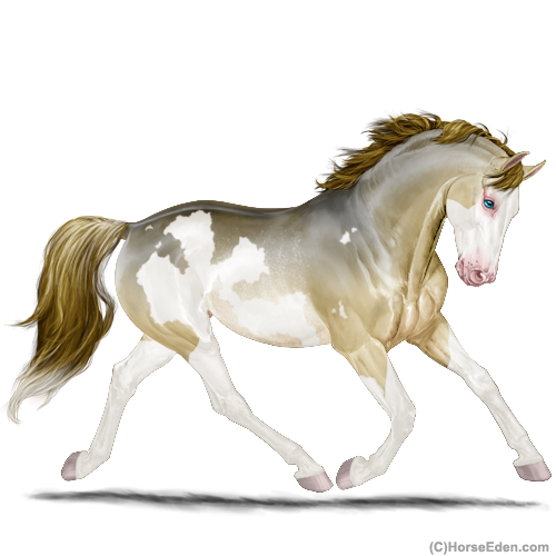Color: Amber Dun Splash White Rabicano Frame