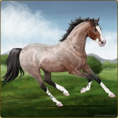 Name: Valhalla CallingAge: 0 Stallion Color: Mahogany Bay Roan Sabino Breed: Anglo Arabian Foal Rating: W/W/W |  |
